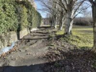 Il primo progetto prevede la realizzazione di un tratto di pista ciclabile all’altezza del civico 26 di via Merendi al fine di prolungare il tratto ciclabile già esistente di via Monzoro (area prevalentemente residenziale) fino all’area di via Merendi (area prevalentemente industriale e area a carattere culturale locale). L’intervento è volto a incentivare la ‘‘mobilità ciclabile’’ casa-lavoro e casa-polo culturale. Grazie alla realizzazione del nuovo tratto, ed ai percorsi ciclabili già esistenti, sarà possibile raggiungere parte della zona industriale del Comune e l’area sede di Italia Nostra Milano nord ovest con lo scopo di valorizzare il territorio attraverso la promozione della cultura, da parte di cittadini residenti nella zona a sud ed a nord di via Milano. Nella zona industriale sono presenti numerose aziende e inoltre nell’area museale di Cascina Favaglie è presente la sede di Italia Nostra, che rappresenta un importante polo di attrazione. Con l’intento di preservare la memoria delle locali radici contadine, oltre alla ghiacciaia (strumento indispensabile per la conservazione degli alimenti deperibili) e alle attività museali, vengono infatti organizzate feste pubbliche tematiche, manifestazioni culturali, laboratori didattici per ragazzi delle scuole, specialmente orticoltura e panificazione con il forno a legna presente. Il nuovo tratto verrà realizzato al posto di un marciapiede esistente a lato del parcheggio pubblico di via Merendi, che presenta problematiche dal punto di vista della sicurezza e della fruizione. La superficie presenta infatti numerosi dissesti a causa delle radici delle alberature ad alto fusto presenti nella superficie a verde pubblica confinante, risulta quindi necessario il relativo abbattimento.